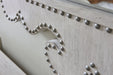 • Scrolled frame design with decorative nailhead trim