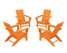 POLYWOOD 4-Piece Modern Adirondack Chair Conversation Set in Tangerine