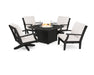 POLYWOOD Braxton 5-Piece Deep Seating Set with Fire Table in Black / Bird's Eye