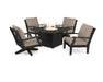 POLYWOOD Braxton 5-Piece Deep Seating Set with Fire Table in Black / Sancy Shale, 125 W x 84 D x 32 H, 263lbs.