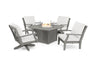 POLYWOOD Braxton 5-Piece Deep Seating Set with Fire Table in Slate Grey / Natural Linen