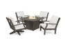 POLYWOOD Braxton 5-Piece Deep Seating Set with Fire Table in Vintage Coffee / Natural Linen