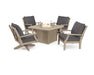 - Includes (2) Deep Seating Swivel Chairs, (2) Deep Seating Chairs, (1) Nautical 42" Fire Pit Table, and (1) Fire Pit Table Cover