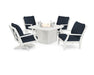 POLYWOOD Braxton 5-Piece Deep Seating Set with Fire Table in Vintage White / Marine Indigo, 125 W x 84 D x 32 H, 263lbs.