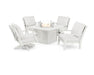 POLYWOOD Braxton 5-Piece Deep Seating Set with Fire Table in Vintage White / Natural Linen