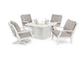 POLYWOOD Braxton 5-Piece Deep Seating Set with Fire Table in Vintage White / Weathered Tweed