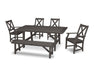 POLYWOOD Braxton 6-Piece Rustic Farmhouse Arm Chair Dining Set with Bench in Vintage Coffee, 165 W x 118 D x 36 H, 303lbs.