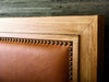 Tommy Bahama Home Los Altos King Antilles Upholstered Panel Bed in Natural Oak 566-144C. Make a design statement with the saddle brown leather panel in the headboard, framed with decorative nailhead trim. For proper proportion, the king headboard features four panels and the pin-knotty oak footboard and siderails provide visual strength and offer an ideal canvas for your bedding. The inset leather headboard panel features top stitching and spaced nailhead trim in a natural coloration.