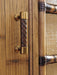 - Crushed bamboo door fronts and raffia drawer fronts and end panels