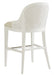 Tommy Bahama Ocean Breeze Lantana Bar Stool in Carribean Sands (Set of 2) 570-896-01. Woven rattan on the outside back and arm panels in a herringbone pattern finished in Caribbean Sands, with metal kickplate in a dark antique brass finish. The upholstered inside back and seat are standard in 221311 Sanibel, a stain resistant performance fabric, with the look and hand of natural woven linen, in a sandy white coloration.