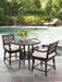 - The swivel rocker barstool features an intricate back design that ties in perfectly with the Black Sands bistro table.