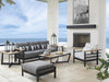 The geometry of the collection design is illustrated in the base and top of the cocktail table, including the diagonal pattern in the teak top. The indigenous color of teak is light brown. With age, the patina turns to an elegant silver tone. The custom dark graphite finish in South Beach is designed to blend with either color tone beautifully. If you choose to oil the teak, it will retain its original color. If you prefer for it to age naturally, the silver tone offers an extremely sophisticated look. Miami's South Beach is known for its high energy and cutting edge style. In similar fashion, the namesake collection from Tommy Bahama Outdoor Living makes a dramatic contemporary design statement. Strong architectural lines are crafted in dark graphite aluminum with a light surface texture. Tops and trim surfaces feature the rich natural tones of sustainably-sourced Indonesian teak.