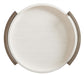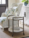 Tommy Bahama Ocean Breeze Osprey End Table 570-960. The oval Osprey end table is a distinctive design, with two stationary gallery trays and a metal frame on casters in a dark antique brass finish.