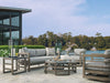 Tommy Bahama Outdoor La Jolla. The architectural lines of La Jolla offer a casual interpretation of contemporary living and a look that blends seamlessly with any outdoor environment. The horizontal Pan-Asian design theme is softened by graceful radius corners and plush upholstered seating. Crafted from sustainably-sourced Indonesian teak, designs feature a custom finish that enriches the character of the wood while offering superior protection from natural elements. Resilient faux slate tops on occasional tables add textural interest, while an array of performance fabrics offer styling options ranging from an understated neutral aesthetic to a bold design statement.