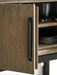 Lexington Furniture Zanzibar Tavola Sideboard in Senegal 416-869. The Tavola sideboard offers functional storage in a statement piece. Behind each pair of doors is an adjustabel shelf. Note the chamfered frame detail around the doors.