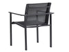 The contemporary design incorporates the dark graphite alumiinum frame with a coordinating weather-resistant sling material for the seat.