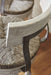 Lexington Oyster Bay Merrick Swivel Bar Stool in Distressed (Set of 2) 714-816-01. Casual, yet sophisticated, this swivel barstool features a hand-woven rush seat and shaped metal back support complimenting its light oyster shell finish. Available as shown. OYSTER BAY by Lexington - Series 714 Casual transitional designs crafted in quartered Mahogany veneers and select hardwoods in a gently distressed finish, with custom hardware in an antique pewter finish. Certain items feature textured metal bases finished in antique pewter, and burnished stainless steel tops.
