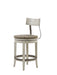 Lexington Oyster Bay Merrick Swivel Counter Stool in Light Oyster Shell (Set of 2) 714-815-01. Casual, yet sophisticated, this swivel counter stool features a hand-woven rush seat and shaped metal back support. Complete the look by pairing with the Hidden Lake bistro table, which can accommodate up to six counter stools. Available as shown. OYSTER BAY by Lexington - Series 714 Casual transitional designs crafted in quartered Mahogany veneers and select hardwoods in a gently distressed finish, with custom hardware in an antique pewter finish. Certain items feature textured metal bases finished in antique pewter, and burnished stainless steel tops.