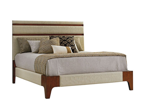 Tommy Bahama Home Island Fusion Queen Mandarin Upholstered Panel Bed in Dark Walnut