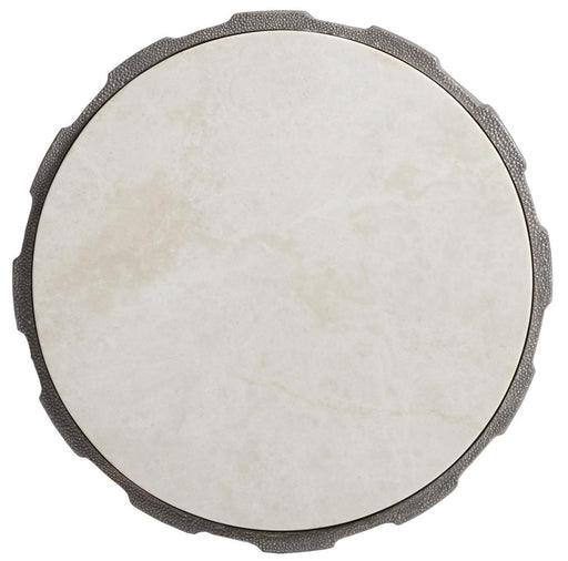 Tommy Bahama Ocean Breeze Flagler Marble Top End Table in White/Aged Pewter