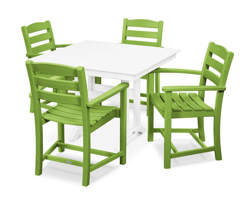 POLYWOOD La Casa Cafe 5-Piece Farmhouse Trestle Arm Chair Dining Set in Lime / White