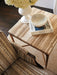 Lexington Furniture Silverado Menlo Park End Table in Brass 740-955. The Menlo Park End Table features hammered and hand-wrought metal bases in a maritime brass finish over silver leaf. Exotic tiger brown travertine tops add exceptional interest, with natural vein patterns that are unique to each piece.