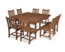 POLYWOOD Traditional Garden 9-Piece Nautical Trestle Dining Set in Teak, 123 W x 123 D x 34.75 H, 293lbs.