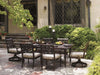 Royal Kahala Black Sands Outdoor. The casual aesthetic of new traditional styling is showcased in custom cast aluminum designs, featuring remarkable hand craftsmanship and exceptional custom finishes. Styling highlights the classic quatrefoil design, an interlocking x-pattern, and laced ribbon tops. The primary finish blends a deep umber coloration with soft gold undertones, while a custom tortoise shell finish takes the look to an entirely new level. Create an outdoor living space that inspires, with the relaxed signature style of Tommy Bahama.
